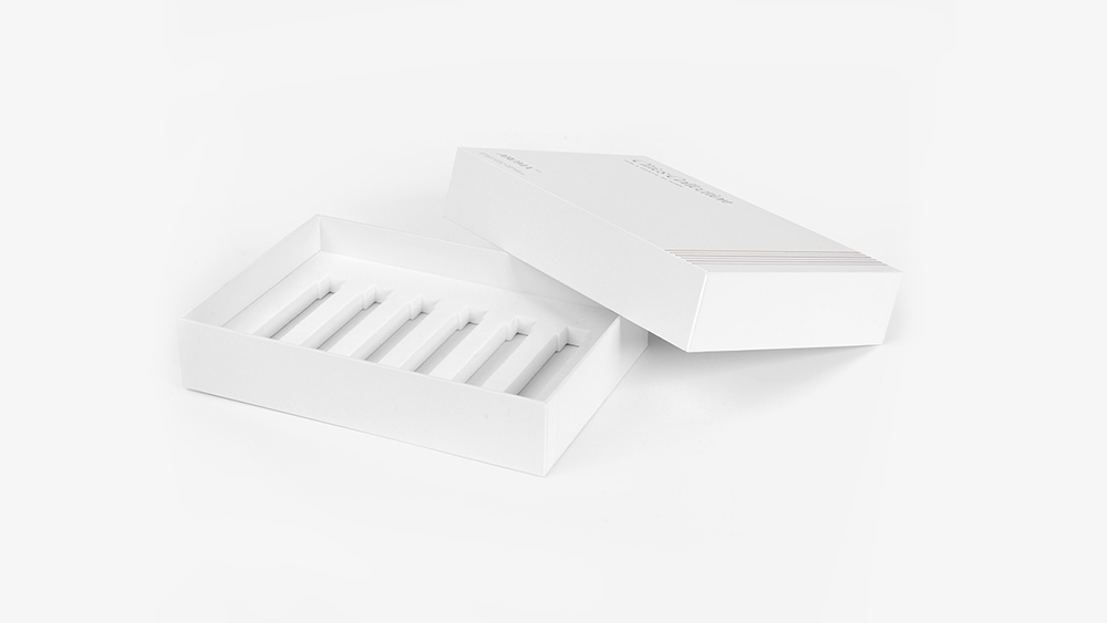High quality white luxury gift box unique cardboard packaging UV printing for cosmetic packaging eye shadow lipstick。The overall appearance shape is rectangular, and the inner support EVA sponge structure is formed. Anti falling measures can protect the whole product